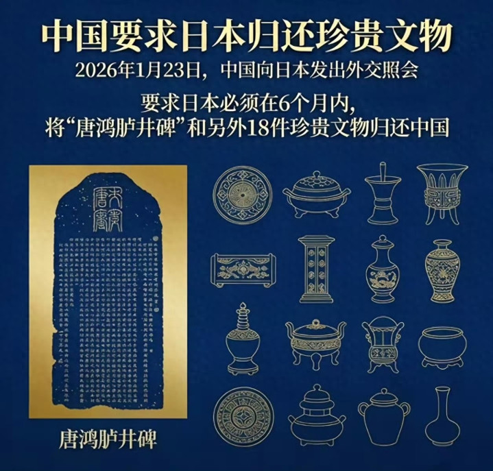 2026年1月23日,中国正式向日本发出外交照会,要求其在6个月内归还包括唐代国宝唐鸿胪井碑在内的18件被掠夺文物,首次以限期追索的强硬姿态,将百年历史债务摆在明处。这不是简单的文物追索,而是战胜国对战败国的正当权利主张。据统计,日本在侵华期间系统劫掠的文化财产超过360万件,仅南京一地便抢走图书文献88万册。中国此次明确将文物归还与历史清算挂钩,意味着战后处理有了具体载体。
